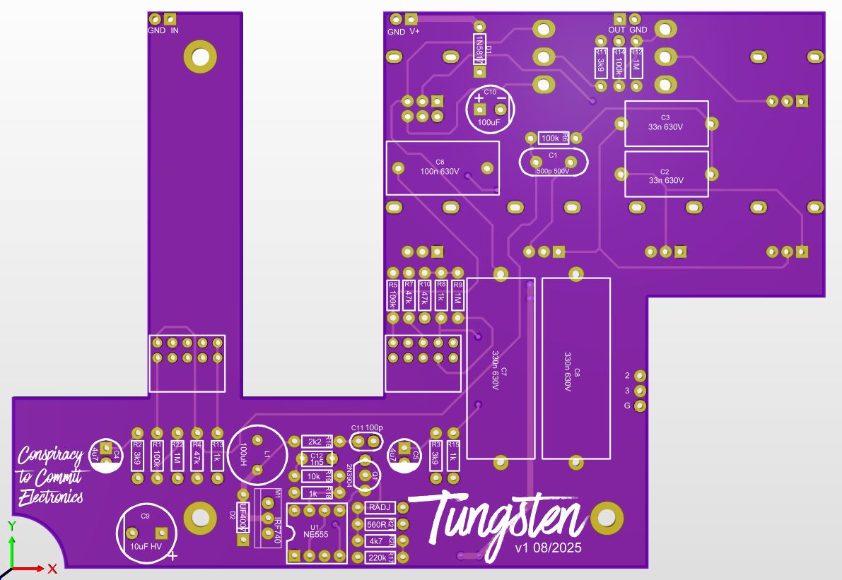 I’ve tried to make this as affordable and as easy to assemble as possible, but this is a high-voltage circuit and requires special care in assembly, testing, and use. Conspiracy to Commit Electronics is not responsible for any damage or injury caused by improper handling, assembly, or use of this circuit.